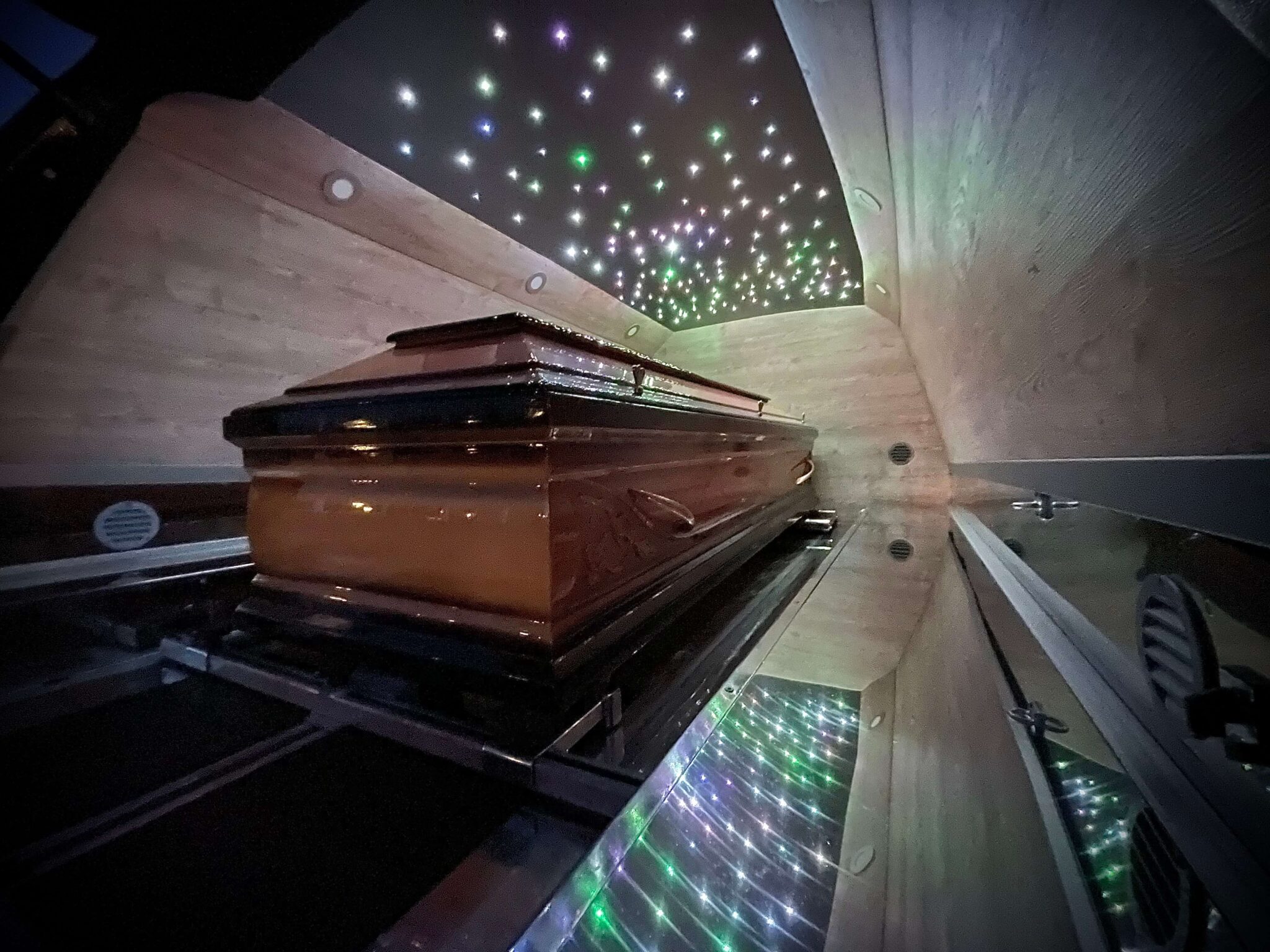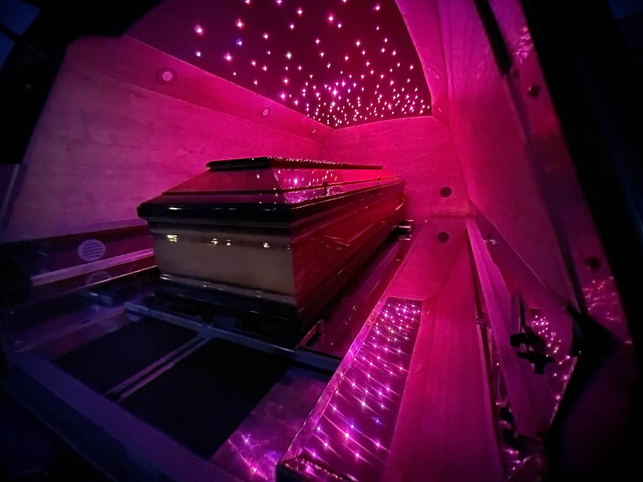 Raspolažemo također sa dva vozila za prijevoz pokojnika od kojih je jedno ekskluzivno, koja su dizajnirana da odgovaraju strogim i najvišim europskim sanitarnim standardima te stilski uređena da pokojniku pružaju dostojanstveni odlazak do posljednjeg prebivališta te pružaju pijetet.